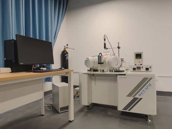 原子力显微镜(AFM)作为扫描探针显微镜家族的一员,可以在纳米尺度下研究材料表面的结构、力学、和电学等性质,是目前研究纳米科技和材料分析的最重要工具之一。本台AFM配备全套测试附件,配备12种功能模式,可实现对样品的表面形貌、相位、摩擦力、力学特性、表面电势、压电性能等的高效表征。同时本仪器可实现液下、空气两种环境下的观察,并配有可控气氛腔室系统,能够实现腔室气氛控制、温湿度、以及样品台的加热冷却等功能,完成样品在不同环境下的在线观察。