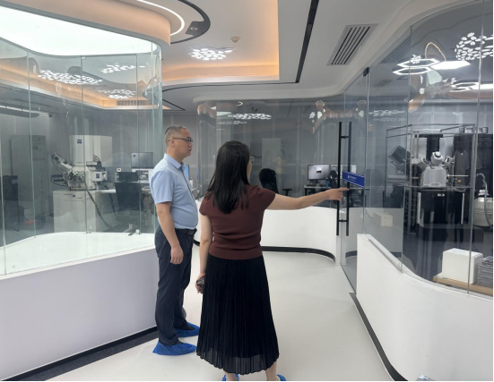 会后,调研团队在李丹阳的陪同下,实地参观了尖端科技楼的实验室及设备设施。双方就技术应用、管理经验等进行了现场交流,并表示将进一步加强沟通协作,共同推动大型仪器开放共享的提质增效。