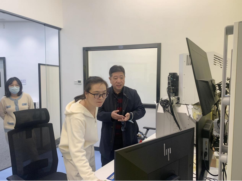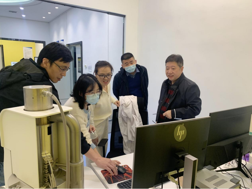 质询环节后,验收组专家们实地考察了五台仪器运行情况,周晓东教授、张莹博士、郭妍利博士认真解答了专家提出的问题。