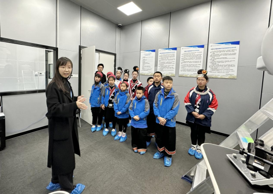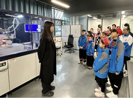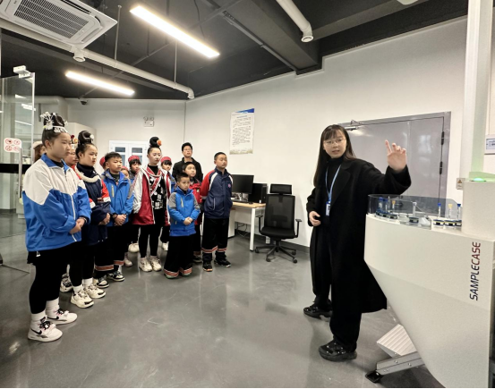 随后曾依老师带领同学们参观了平台各大型机组,在X射线实验室,曾依老师通过钻石以及同学们所佩戴的银饰举例,介绍了如何通过各类X射线仪器了解物质结构、进行元素分析;在极具科技感的X射线光电子能谱仪前展现了表面分析的基本原理;在核磁实验室,曾依老师通过展示送样过程让同学们了解了核磁共振波谱仪与医院常见的核磁共振的区别;在扫描电镜室,曾依老师通过扫描电镜和手机拍照的光源区别简单介绍了其基本原理;在透射电镜实验室,详细介绍了其穿透性的特色;在冷冻电镜实验室,曾依老师展示了具体的样品以及蛋白实拍案例,让同学们更直观的感受冷冻电镜的独特魅力。