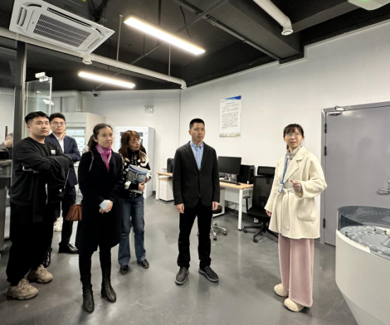 3月20日,太湖新城经济发展局局长朱新荣、副局长王小寒、吴江区科技局领军人才服务中心主任张珏、武珞控股集团副总裁莫宗杰等领导来平台参观考察。