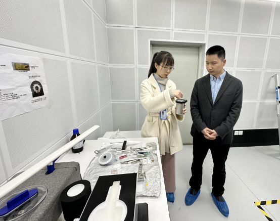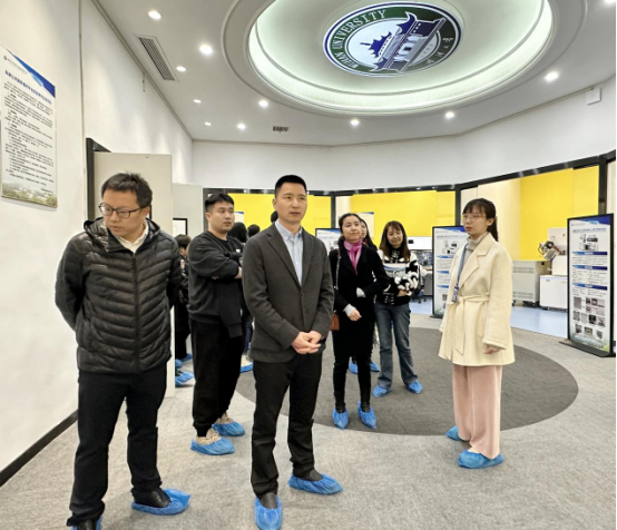 曾依老师为各位领导详细介绍了平台的整体运行情况和主要仪器设备。朱新荣一行参观了X射线实验室、扫描电镜、透射电镜、冷冻电镜机组,并就各类仪器的具体应用范围和现有支撑成果进行了进一步了解。