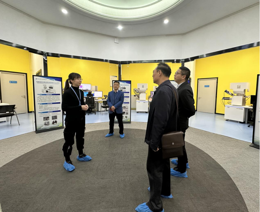 平台主任王建波对各位嘉宾的到来表示热烈欢迎,曾依老师为大家详细介绍了平台的建设历程以及整体运行情况,并陪同参观了X射线、核磁共振、电镜等大型仪器机组。在场的技术人员也热情介绍了自己所负责仪器的基本情况。