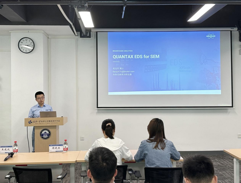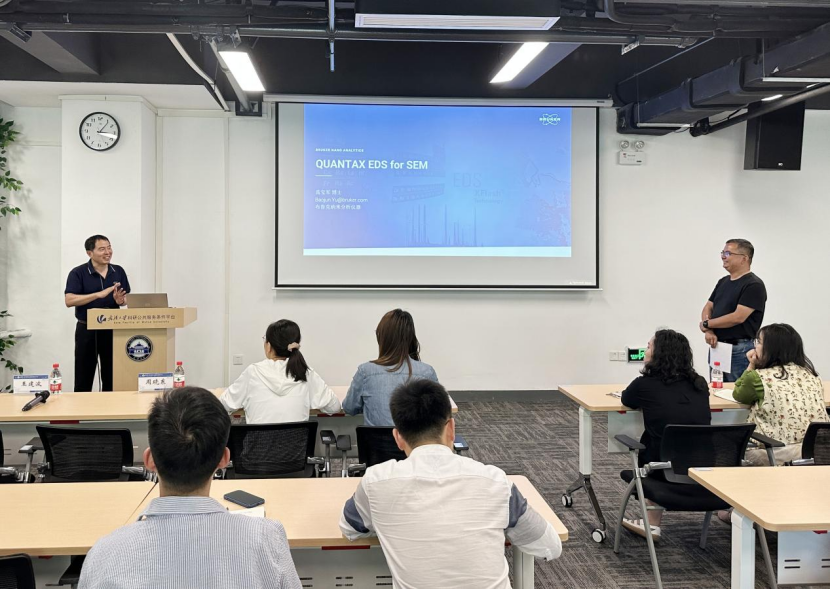 平台主任王建波对布鲁克各位专家的到来表示感谢和欢迎,布鲁克纳米分析部亚太区总裁焦汇胜博士对公司基本情况进行简单介绍。随后布鲁克纳米分析产品应用经理禹宝军博士和纳米分析部应用科学家韦家波分别为大家带来了题为《QUANTAX EDS for SEM》和《先进的EBSD/TKD表征技术及其应用》的报告;516日,在尖端科技楼101D扫描电镜实验室,布鲁克应用工程师分别对平插式能谱仪、EBSD、同轴TKD等高端仪器进行了应用高阶培训及用户交流活动,并针对校内部分师生的疑问进行现场解答。