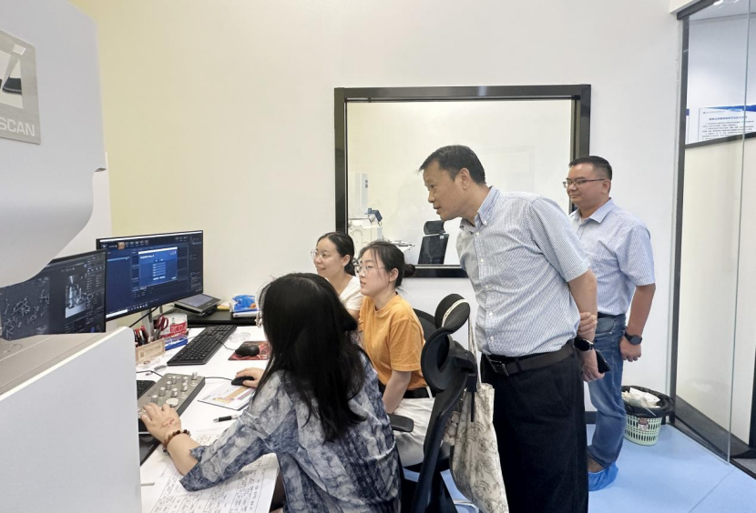 平台主任王建波对各位领导莅临指导表示热烈欢迎,详细介绍了平台的整体运行情况和主要仪器设备,并陪同领导们依次参观了X射线实验室、扫描电镜、透射电镜、冷冻电镜机组,并对各类仪器的运行情况和所提供的支撑服务进行了进一步介绍。
