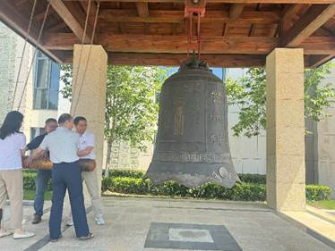 参观结束后,全体人员来到廉政文化广场,实验室与设备管理处处长王建波、党委巡视工作领导小组办公室副主任陈丽霞、资产经营投资管理有限责任公司副书记刘明建、法学院院长助理安丰雷合力撞响警示钟,寓意反腐倡廉,警钟长鸣。