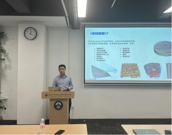 另一位报告人孟方礼从显微CT成像原理及多尺度多维度研究展开,详细介绍了原位动态4D成像新技术在高温疲劳试验等应用场景快速、清晰成像的案例,最后介绍了公司最新产品能谱CT的工作原理和前沿应用实例。