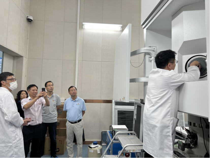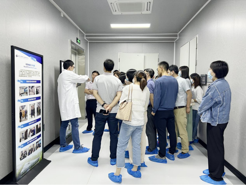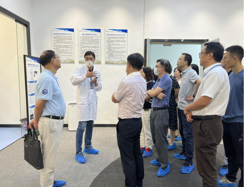 应志豪向支部一行详细介绍了平台的建设过程、仪器安装调试、技术团队、主要仪器设备以及支撑服务开展等情况,并陪同支部党员们参观了平台各项大型仪器设备。周晓东详细介绍了扫描电镜、透射电镜、冷冻电镜的基本原理和应用范围。党员同志们现场观看了双球差透射电镜的送样过程,并就平台自主上机方式、实验室管理制度、环境要求、软件信息等问题与平台老师进行了探讨。