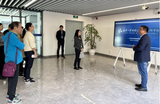 王建波教授对支部一行的到来表示欢迎,周晓东书记为大家详细介绍了平台的建设历程、仪器装备、以及运行情况,并陪同大家参观了扫描电镜、透射电镜、冷冻电镜机组,针对大家所关心的实验室安全、仪器维保等问题进行了细致讲解。