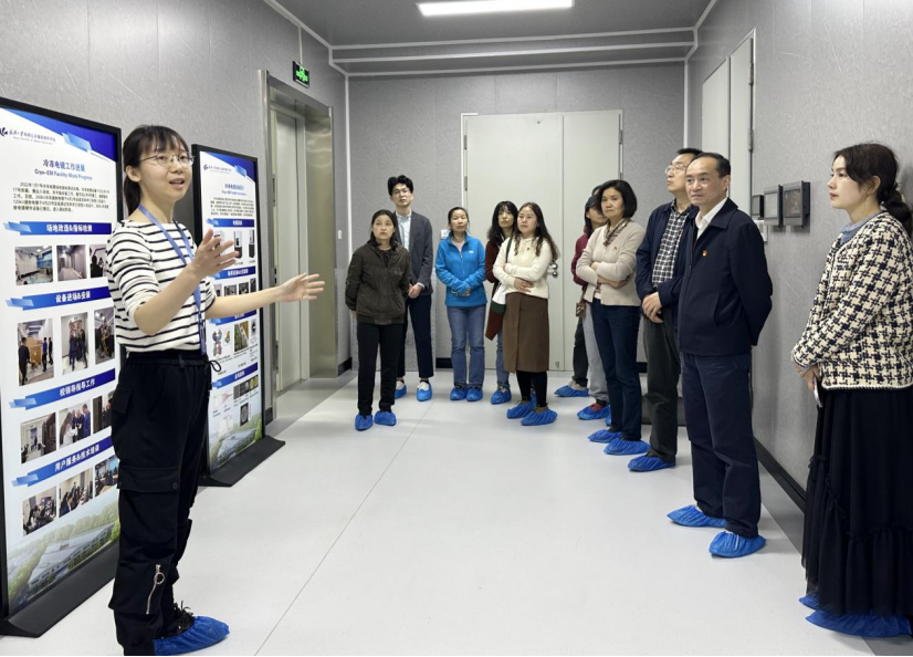 随后大家依次参观了X射线实验室、核磁实验室、扫描电镜、透射电镜、冷冻电镜等平台大型设备机组,张燃老师、马烨老师就所负责仪器设备的基本原理、应用领域等方面的情况进行了详细介绍,支部书记周晓东为大家展示了扫描电镜的实拍案例。
