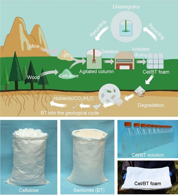 图2.纤维素/膨润土(Cel/BT)泡沫的制备。图片来源:ACS Nano