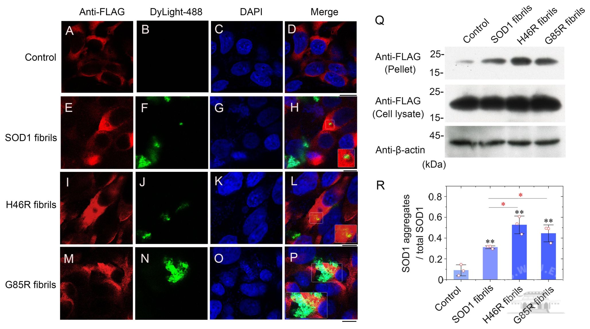 SOD1病理突变体H46R和G85R的纤维种子具有更强的诱导细胞内源SOD1聚集(“模板折叠”)的能力