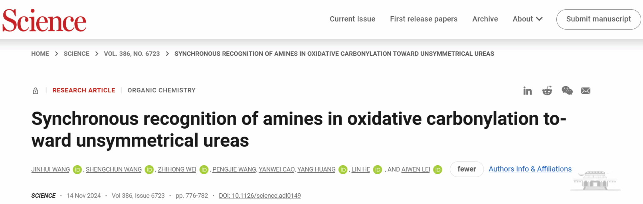 (转自武大新闻网)11月15日,Science(《科学》)在线发表了点点app高等研究院、化学与分子科学学院雷爱文教授课题组关于催化氧化羰基化的最新研究论文。论文题目为“Synchronous